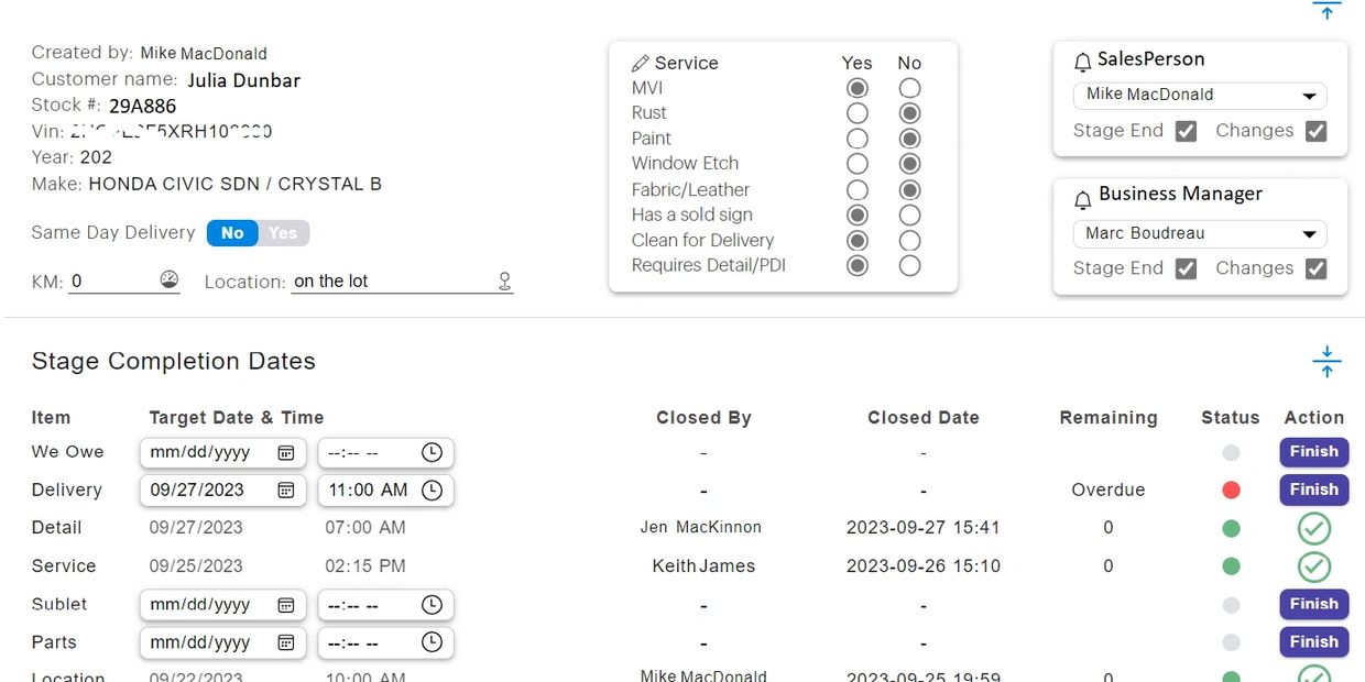 The details you see on the Prepsheet is created and maintained by the various users in the dealership assigned to that department or function. Based on the roles assigned to the user, Salesprep will restrict changes and only allow changes to those areas accessible to the role and department. ITS FAST, EASY and so intuitive its really simple.